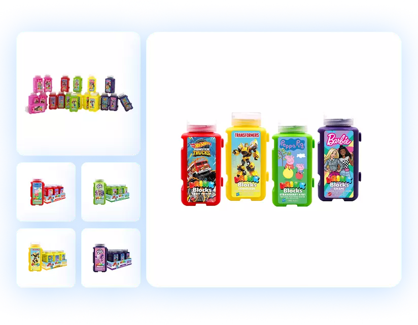 Every bottle doubles as a building block toy! One drink, double the fun.